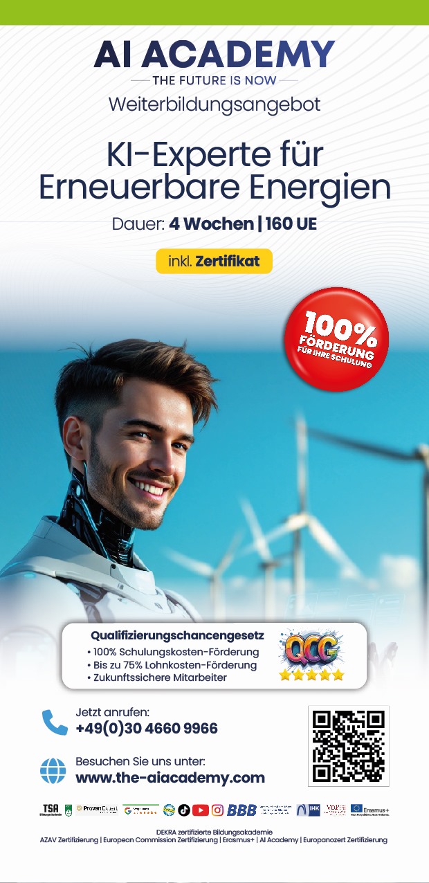 Der berufsbegleitende Online-Kurs "KI-Grundlehrgang – AI Manager (Grundlagen)" bietet eine kompakte und praxisnahe Einführung in das Thema Künstliche Intelligenz (KI). Der Kurs richtet sich an Einsteiger, Berufstätige, Arbeitssuchende, Quereinsteiger, Unternehmer sowie an Firmen, die ihre Mitarbeitenden im Bereich digitale Transformation und KI schulen möchten. In verständlichen Schritten lernen die Teilnehmenden: was Künstliche Intelligenz ist und wie sie funktioniert wie ChatGPT, KI-Bild- und Videotools im Berufsalltag eingesetzt werden wie Inhalte automatisiert erstellt und optimiert werden wie Social Media, Büroprozesse oder Kundenservice mit KI effizienter werden welche Tools in der Praxis besonders nützlich sind wie man KI-Anwendungen sicher, ethisch und datenschutzkonform einsetzt Nach dem Kurs erhalten Teilnehmende ein anerkanntes Zertifikat als "KI-Manager (Grundlagen)", das ihre Qualifikation für moderne, digitalisierte Arbeitsprozesse in verschiedenen Branchen nachweist – ideal für Bewerbungen, interne Weiterentwicklung oder den Start in eine neue berufliche Zukunft.